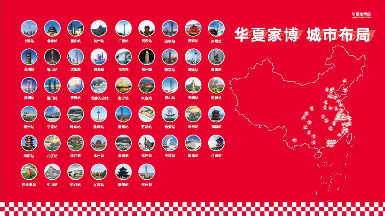 為了更好的將省錢便捷的家裝采購服務(wù),更好的服務(wù)到消費者,華墨集團(tuán)于2019年提出了“百城計劃”的戰(zhàn)略目標(biāo)——2023年實現(xiàn)華夏家博會覆蓋國內(nèi)100城。經(jīng)過全體華墨人的共同努力,2021第三季度新開城市增加了:淮安、滄州、鎮(zhèn)江、柳州、淄博、瀘州、襄陽、珠海、臺州、邯鄲、宿遷、連云港、玉環(huán)、中山,落地城市增至51城。