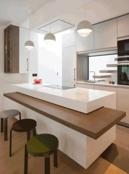 好了,一個島臺的實用性設計就說到這了,如果你不喜歡這種的話,其實下面這三種隱藏式設計也是不錯的: