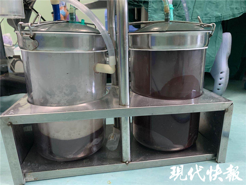為了順利完成這臺“重量級”手術(shù),保障吳女士手術(shù)的安全、舒適,醫(yī)療團(tuán)隊(duì)召開了術(shù)前協(xié)調(diào)會(huì)確定手術(shù)方案。“這個(gè)病人脂肪層達(dá)到了8厘米的厚度,如果做開腹手術(shù),要縫合很多層,傷口很難愈合。病人痛苦比較大,做腹腔鏡也是有一定難度。”楊洪波說,他們選擇從肚臍入手,這里皮膚厚度相對較薄,做了一個(gè)小切口,醫(yī)生共吸出了近5000毫升的囊液,隨后將囊皮完整剝離,手術(shù)創(chuàng)傷比較小,做的也比較快。