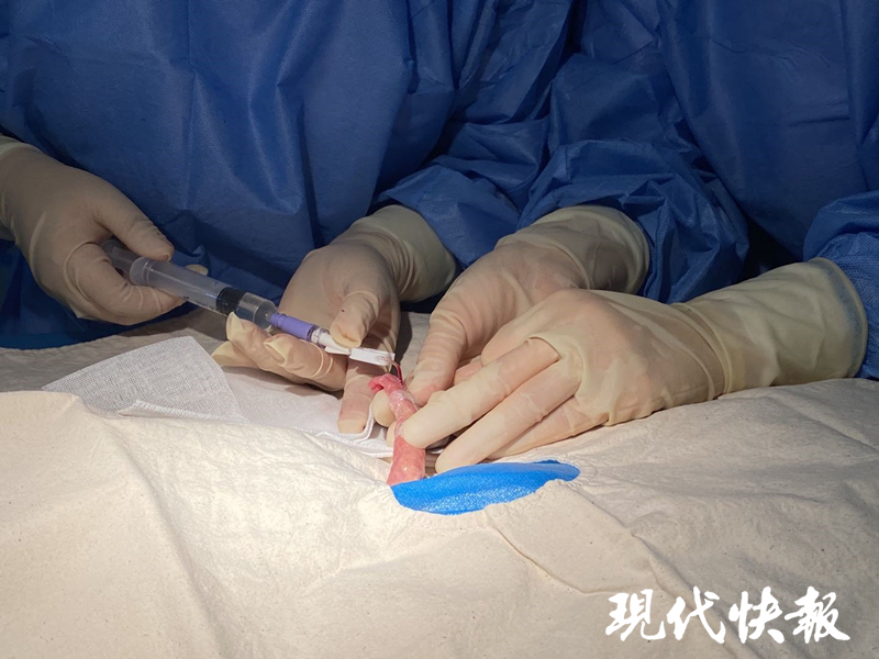 剛?cè)朐簳r(shí),丹丹的皮膚異常薄嫩,幾乎呈透明膠胨狀,血管如發(fā)絲般纖細(xì),大腿只有護(hù)士阿姨的手指粗,隨著生理性體重下降,丹丹的體重一度降至490克,末梢循環(huán)極差,容易壞死,采血檢查也異常困難。