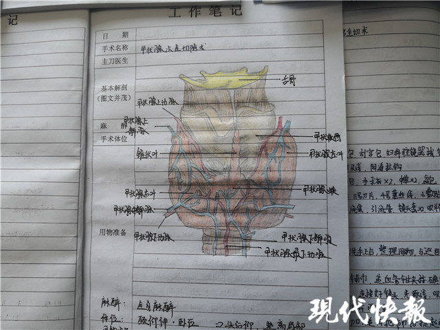 袁敏說,按科室要求,每一名護(hù)士都要嚴(yán)格書寫手術(shù)筆記,以增強(qiáng)學(xué)習(xí)效果。只是每個人的美術(shù)功底不一樣,繪制解剖圖的水平也可能有所不同,每一位護(hù)士記錄的側(cè)重點(diǎn)也有不同。