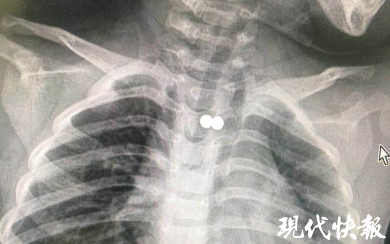 △X光顯示兩顆珠子在孩子體內(nèi)