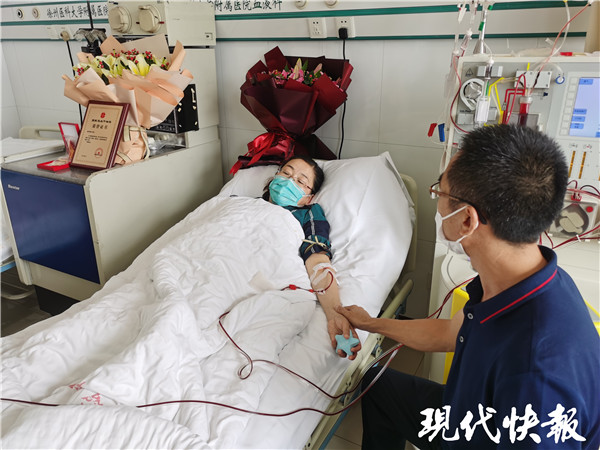 (通訊員 霍玉晶 記者 張曉培 文/攝)9月22日一早,46歲的鹿秀敏在丈夫的陪伴下,來(lái)到徐州醫(yī)科大學(xué)附屬醫(yī)院?jiǎn)魏思?xì)胞采集室,為一名3歲的患兒捐獻(xiàn)造血干細(xì)胞。