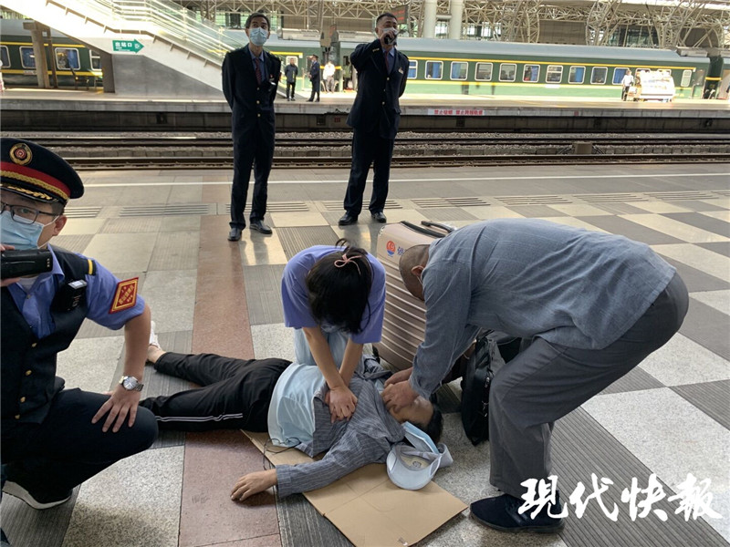 (通訊員 郭明慧 見習(xí)記者 陳子秋 記者 顧元森)10月5日下午,在南京火車站站臺(tái)上,一名大媽在等候火車進(jìn)站時(shí),突然暈倒在地。所幸江蘇省人民醫(yī)院的一名實(shí)習(xí)醫(yī)生及時(shí)站出來施救,直至救護(hù)車趕到,將大媽送往醫(yī)院。