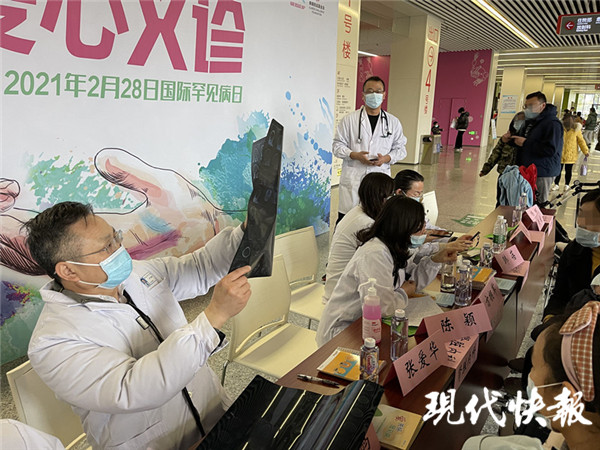 有的患者有藥可治,需要高昂的醫(yī)療費(fèi)用才能維持生命。更多的患者,需要苦盼科技的發(fā)展,能實(shí)現(xiàn)病情逆轉(zhuǎn),否則只能漸漸走向死亡。2月28日是國際罕見病日,27日,南京兒童醫(yī)院舉行了愛心義診,眾多患者家屬也來到這里,希望得到最新的好消息。