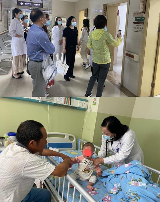 兒科李蓮嘉主任帶領(lǐng)兒科團隊,陪同專家們參觀中醫(yī)院兒科門急診及病區(qū),甘衛(wèi)華院長為在院小患者查體,指導診療,向他們表達了節(jié)日的問候。