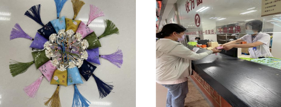 一個(gè)中藥保健香囊:院精選道地藥材,嚴(yán)格調(diào)制配方,精心制作了具有扶助正氣、醒腦開竅、驅(qū)蟲殺毒功效的中藥防病香囊,結(jié)合“中醫(yī)藥就在你身邊”健康巡講等活動(dòng)免費(fèi)發(fā)放。