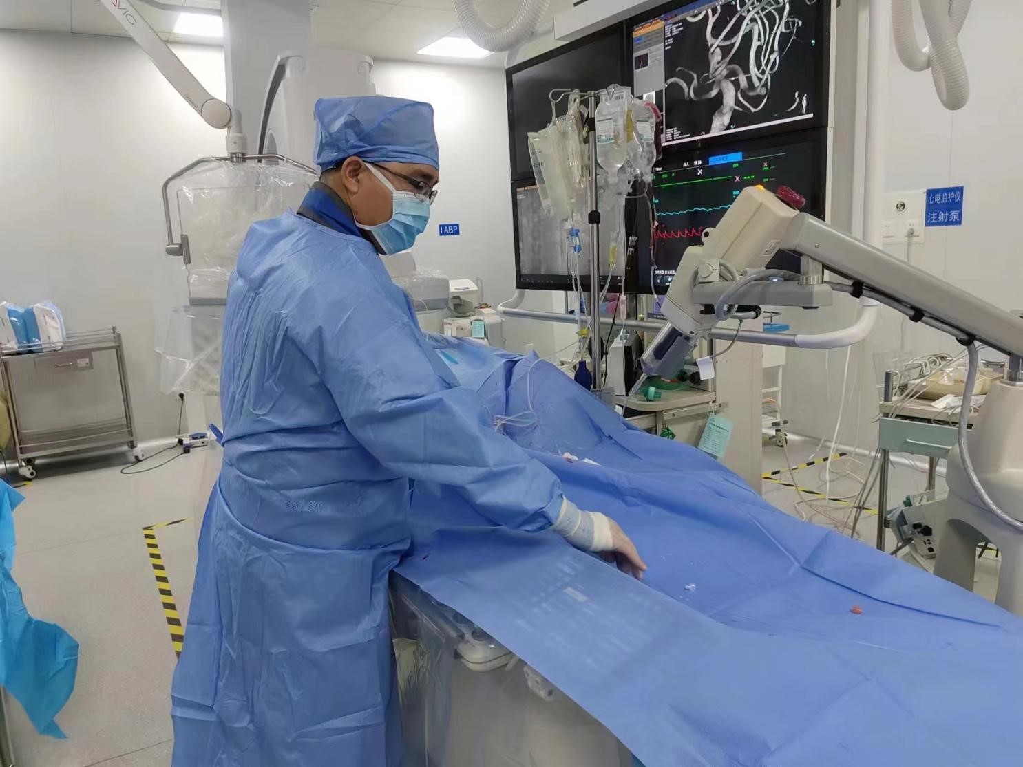 術(shù)中,劉澤超在導(dǎo)管室團隊的默契配合下,為產(chǎn)婦實施“子宮動脈造影+動脈栓塞術(shù)”,通過產(chǎn)婦股動脈穿刺置管,在DSA引導(dǎo)下行子宮動脈造影,造影可見子宮腔內(nèi)出血明顯,遂通過導(dǎo)管注入明膠海綿栓塞顆粒,對子宮動脈進行栓塞止血,產(chǎn)婦出血迅速得到控制,生命體征逐漸趨于平穩(wěn)。經(jīng)過醫(yī)護團隊的同心協(xié)力,手術(shù)用時1小時20分鐘順利完成,不僅挽救了產(chǎn)婦生命,而且保全其子宮及其功能。看到產(chǎn)婦平安無事,其家屬喜極而泣,全體醫(yī)護人員也都松了一口氣。