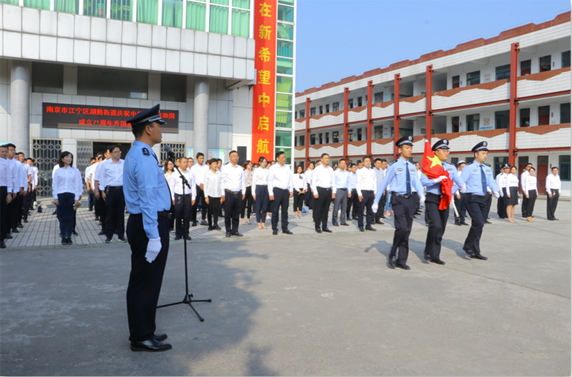為慶祝中華人民共和國成立71周年,進一步加強愛國教育,10月1日,江寧區(qū)湖熟街道新時代文明實踐所在湖熟小學舉行升旗儀式,以此表達濃濃的愛國情和深深的民族自豪感。街道黨政領(lǐng)導(dǎo)、機關(guān)部門、各村(社區(qū))兩委干部、執(zhí)法大隊、公安干警、河南社區(qū)群眾代表參加了這次升國旗儀式。