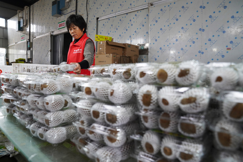 10月27日,在奉新縣赤岸鎮(zhèn)城下村,果農(nóng)在包裝獼猴桃。新華社記者 萬(wàn)象 攝