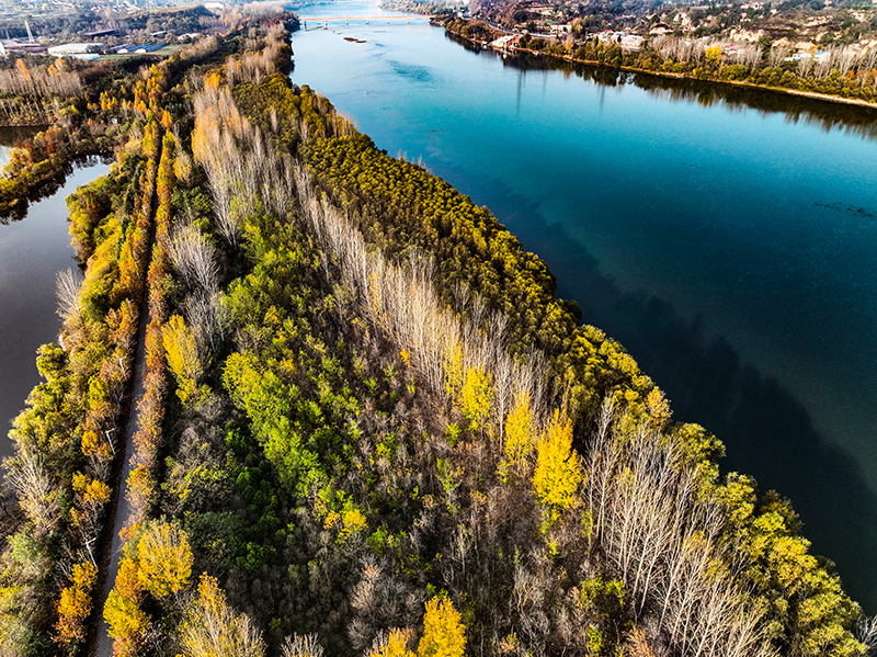 11月14日拍攝的河南黃河濕地國家級自然保護(hù)區(qū)濟(jì)源段景色(無人機(jī)照片)。初冬時節(jié),河南黃河濕地國家級自然保護(hù)區(qū)濟(jì)源段五彩斑斕,美如畫卷。新華社發(fā)(苗秋鬧 攝)