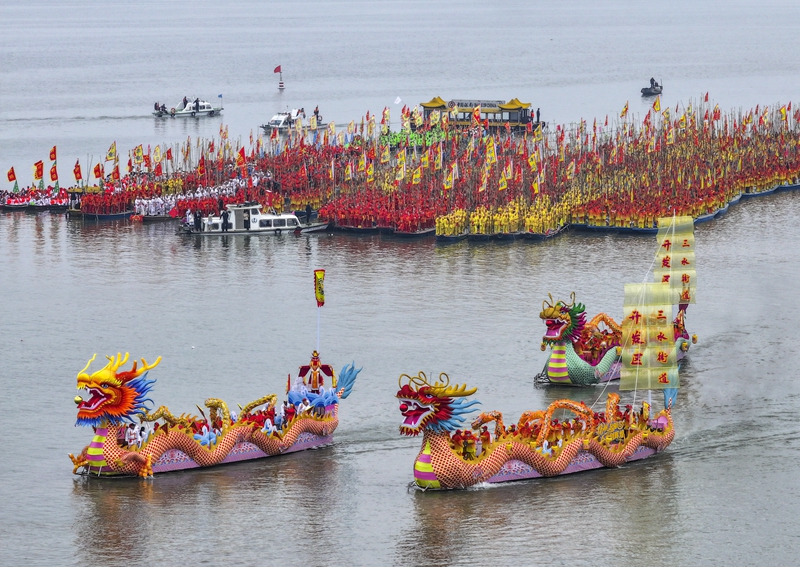 4月6日,參加會船表演的船只等待出發(fā)(無人機照片)。新華社發(fā)(湯德宏?攝)