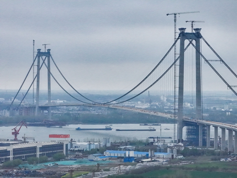 這是4月3日拍攝的龍?zhí)堕L(zhǎng)江大橋(無人機(jī)照片)。新華社記者 李博 攝