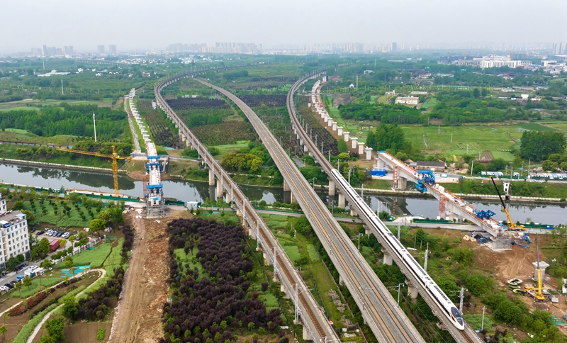 當(dāng)日,由中鐵四局承建的新建上海至南京至合肥高速鐵路引入合肥樞紐工程跨店埠河特大橋連續(xù)梁順利合龍,為后續(xù)施工奠定基礎(chǔ)。新建上海至南京至合肥高速鐵路是國家中長期鐵路網(wǎng)規(guī)劃“八縱八橫”中沿江通道的重要組成部分,是江北沿江城市與南京都市圈、上海都市圈快速直達(dá)的通道。新華社發(fā)(郎成濤 劉玉才?攝)