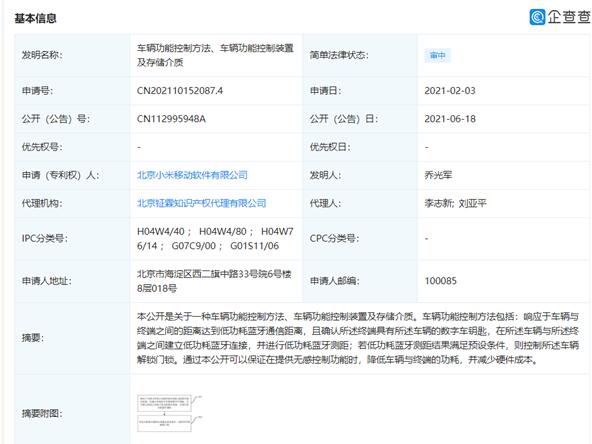 小米公開車輛功能控制相關(guān)專利:大大降低硬件成本