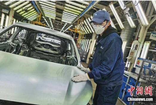 中新財(cái)經(jīng)4月22日電 (葛成)“生產(chǎn)線上的工人正仔細(xì)檢查白車身,汽車制造工作正有條不紊地開展。”