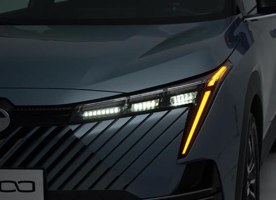 前臉進氣格柵運用精益化的V字型陣列設計,每一側有12條共24條進氣簾,鑲嵌精致的鎢鋼色飾條,縫隙寬度按等差數(shù)列漸開分布,打造出十足的機甲風格。一體式大燈集成了日行燈、位置燈、遠光燈、近光燈和轉向燈等模塊,造型仿佛兩顆獠牙一般,具有很強的獨特性和識別性。