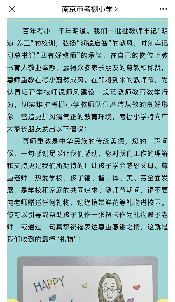綠色教師節(jié)!南京不少中小學(xué)倡議:一句問候一聲感謝 是最好的節(jié)日表達