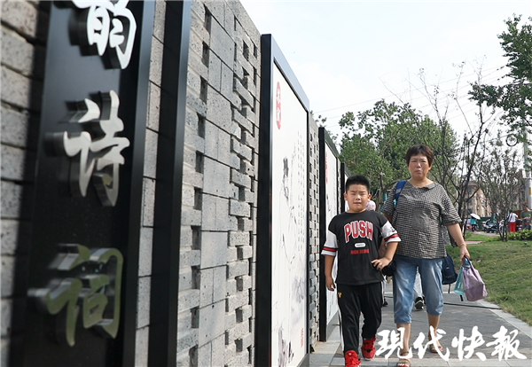 現(xiàn)代快報記者了解到,這處候?qū)W區(qū)原本是廢棄堆場,今秋新學期開學前剛建好,位于學校后門,面積大概3000平方米左右。這里綠草、花叢、樹木錯落,一道曲折的文化墻上,有古代文化名人的畫像和簡介,樹池新栽種了樹冠相對較大的樹種可以遮陰,一側(cè)還有充滿設(shè)計感的座椅。據(jù)悉,未來還會增設(shè)體育設(shè)施、多功能的合成墻等,讓候?qū)W區(qū)功能更多、更有趣味性。