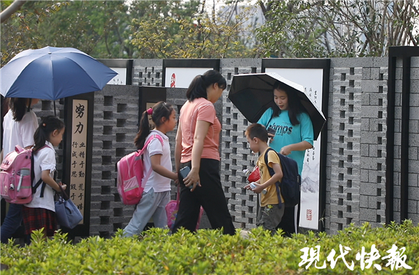 △ 南京市棲霞區(qū)實驗小學堯和路校區(qū)門口的公園式候?qū)W區(qū)