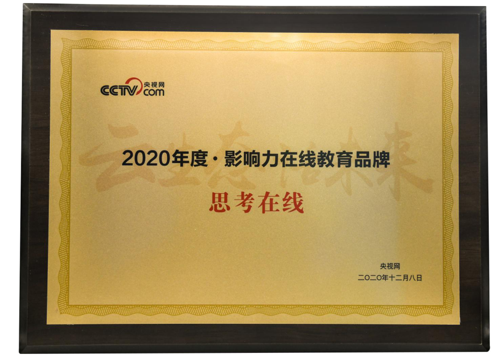 思考在線獲頒央視網(wǎng)“2020年度影響力在線教育品牌”獎項