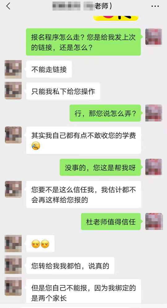 到了10月份,“杜老師”聯(lián)系張女士,稱可通過自己的員工身份,來幫她續(xù)充買課,這樣能優(yōu)惠上千元。張女士剛開始半信半疑,但有過1個月的溝通基礎(chǔ),張女士覺得“杜老師”態(tài)度誠懇值得信任,便先后給他轉(zhuǎn)了10400元。