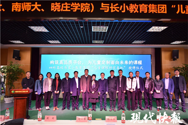 (記者 舒越)4月6日,南京大學(xué)、東南大學(xué)、南京師范大學(xué)、南京曉莊學(xué)院四所高校與南京市長(zhǎng)江路小學(xué)教育集團(tuán) “兒童課程研究基地”授牌儀式在長(zhǎng)小舉行,合作共建四個(gè)兒童課程研究基地,為兒童定制面向未來的語文、數(shù)學(xué)、心理健康及科學(xué)技術(shù)課程。