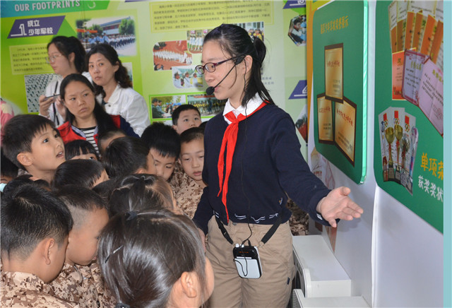 海韻樓、蔚藍(lán)跑道、海防館……海英小學(xué)校園里海味十足。海英小學(xué)校長(zhǎng)劉羽告訴記者,海英小學(xué)是1960年在劉伯承元帥親自關(guān)心下為海軍學(xué)院(現(xiàn)海軍指揮學(xué)院)的子弟就學(xué)而興建的,校名“海英”包含著“海軍英雄”的寓意。“認(rèn)識(shí)海洋、親近海軍、了解海防”為內(nèi)容的“三海”教育是學(xué)校的特色文化。每年11月都要舉辦“三海”文化節(jié)。2017年舉辦了海洋時(shí)裝秀,2018年和2019年分別開展了“海防大篷車”和“我用畫筆畫國(guó)防”活動(dòng)。軍訓(xùn)展演、國(guó)防進(jìn)校園等年年有。被譽(yù)為“海天驕子”的海軍優(yōu)秀飛行員艦長(zhǎng)柏耀平,在海院學(xué)習(xí)期間曾擔(dān)任學(xué)校中隊(duì)校外輔導(dǎo)員。學(xué)校經(jīng)常組織小學(xué)生走訪老英雄、老前輩,聽海軍叔叔講故事,努力傳承紅色基因。學(xué)校還獲評(píng)南京市創(chuàng)建全國(guó)雙擁模范城有功單位等。
