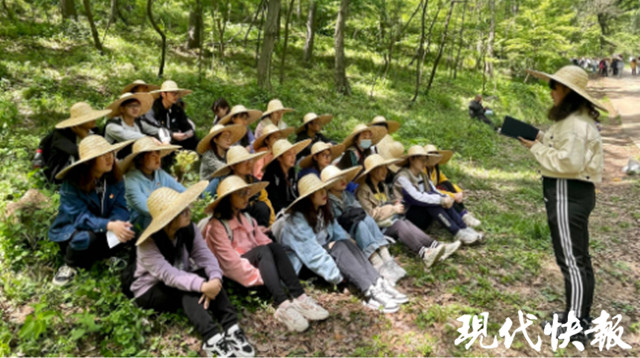 伴著老山上的鳥語花香,中國藥科大學20多名青年大學生頭戴草帽,席地而坐,通過長征之路微模擬、詩朗誦《長征組歌》等多種形式擷取歷史片段,重溫當年紅軍長征血與火的崢嶸歲月。