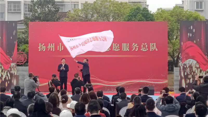 △為“揚(yáng)州市全民閱讀志愿服務(wù)總隊(duì)”授旗