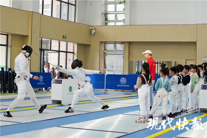 (記者 李子璇)鋪設(shè)專業(yè)場(chǎng)地,引入專業(yè)教練開(kāi)設(shè)擊劍課程、跆拳道課程和游泳課程……2020年以來(lái),“體教融合”成了全社會(huì)的一個(gè)熱詞,倡導(dǎo)全面發(fā)展、自由成長(zhǎng)的南京外國(guó)語(yǔ)學(xué)?;窗卜中W咴谇傲?,建立起了全面發(fā)展、集“學(xué)、練、賽”的新嘗試。“我希望從南外走出去的孩子不僅綜合素質(zhì)全面,還都能有一樣拿得出手的特長(zhǎng)。”4月28日,南京外國(guó)語(yǔ)學(xué)?;窗卜中Ee行課后體育特色課程開(kāi)放日活動(dòng),校長(zhǎng)朱征告訴記者,學(xué)校更關(guān)注學(xué)生終身發(fā)展的動(dòng)力和能力。