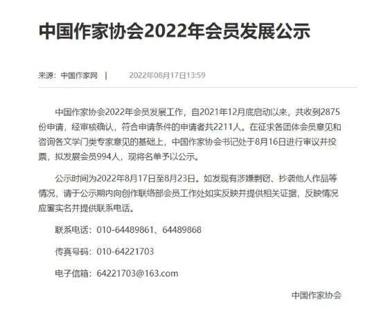 17日,中國作家協(xié)會2022年會員發(fā)展公示出爐,有網(wǎng)友發(fā)現(xiàn)此前備受爭議的賈淺淺位列公示名單中,對此有人評價“我的中國文學價值觀崩塌了”。