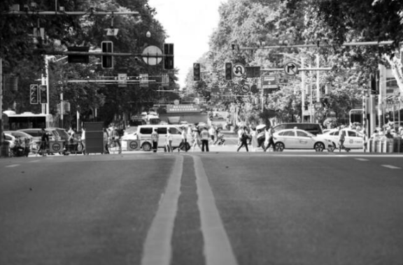喧囂的馬路沒有了汽車的穿梭,頓時開啟“靜音模式”。市民都十分配合交警的安排,選擇繞道或是靜悄悄地走過。