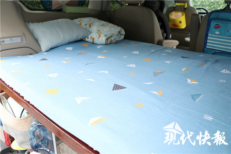 讓朱凌云最滿意的設(shè)計(jì),是車上的“大床”。“車子第三排座椅放倒后,正好和后備箱的第三層平齊,在上面鋪個(gè)墊子和床單,可以睡一個(gè)大人和兩個(gè)孩子。”朱凌云說,平時(shí)自己帶孩子出去玩,玩累了可以隨時(shí)躺下來休息。