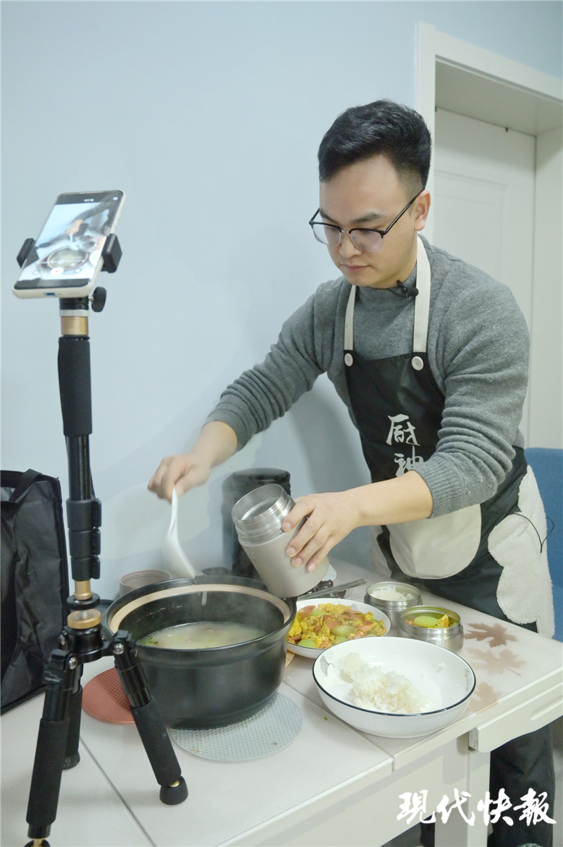 在平時,劉康就喜歡記錄生活。為什么發(fā)起365天做飯不重樣的挑戰(zhàn)?他說在抖音上,有很多人挑戰(zhàn)365天健身、夜跑,于是他想著用做飯的形式發(fā)起挑戰(zhàn),記錄自己給女友做飯的日常,而女友也成為她的第一個粉絲。劉康介紹,一頓飯一般是兩個菜,兩人口味一致,喜歡吃辣。但考慮到女友很瘦,平時工作比較忙碌,劉康更多的是給她燉湯補一補。曾經(jīng)做過健身教練的他,也會搭配飲食,保證營養(yǎng)。而為了新鮮,劉康會早早去菜場買菜,親自挑揀。