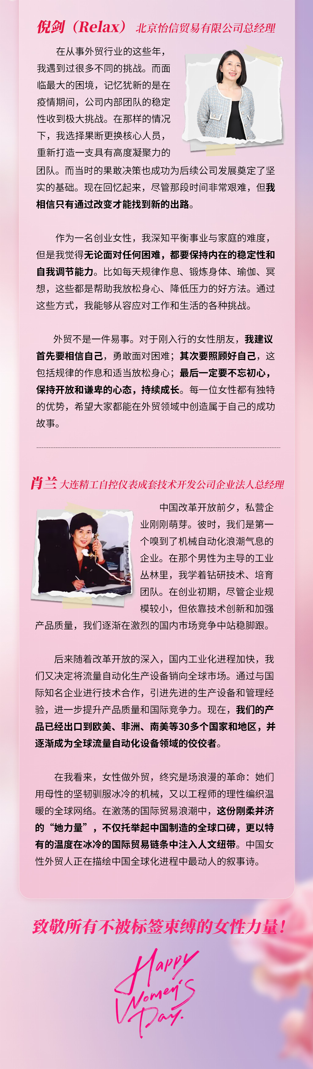 中企跨境采訪了四位在行業(yè)深耕多年的女性外貿(mào)領(lǐng)軍者,她們從不同維度詮釋了新時(shí)代“她力量”的獨(dú)特價(jià)值。不論強(qiáng)調(diào)平衡智慧,破解事業(yè)與家庭二元的對立;主張將女性同理心淬煉為商業(yè)洞察利器;或是以危機(jī)中的團(tuán)隊(duì)重塑印證女性領(lǐng)導(dǎo)者的抗壓與堅(jiān)韌;還是通過技術(shù)突圍展現(xiàn)剛?cè)岵?jì)的國際化視野……她們都共用演繹了當(dāng)代中國女性以情感智能賦能商業(yè)決策、用生命彈性突破出傳統(tǒng)邊界、在全球化浪潮中構(gòu)建人文競爭力的創(chuàng)新范式,為中國制造注入溫暖而堅(jiān)韌的進(jìn)化基因。