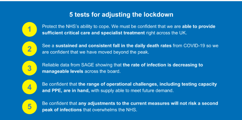 據(jù)了解,英國政府解封政策的變動一直根據(jù)Sage科學(xué)顧問和政府共同設(shè)定的五個指標(biāo)(如下圖所示)來進(jìn)行調(diào)整。