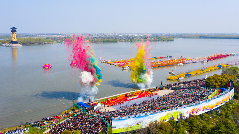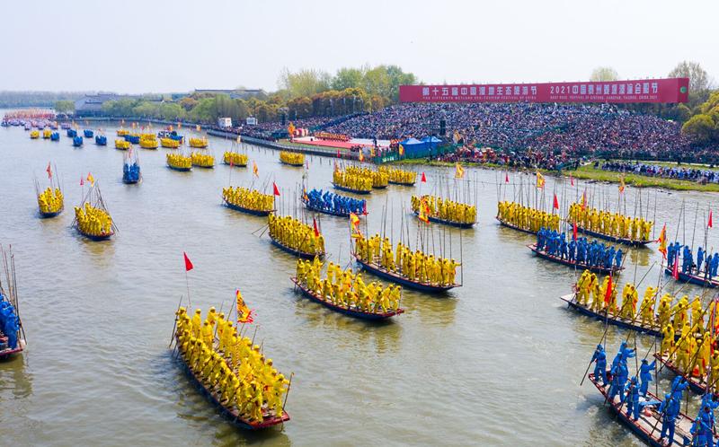 會水會船繪姜堰,養(yǎng)生養(yǎng)福漾溱湖。4月8日,十里溱湖再度成為一個大舞臺,第十五屆中國濕地生態(tài)旅游節(jié)暨2021中國泰州姜堰溱潼會船節(jié)盛大開幕。