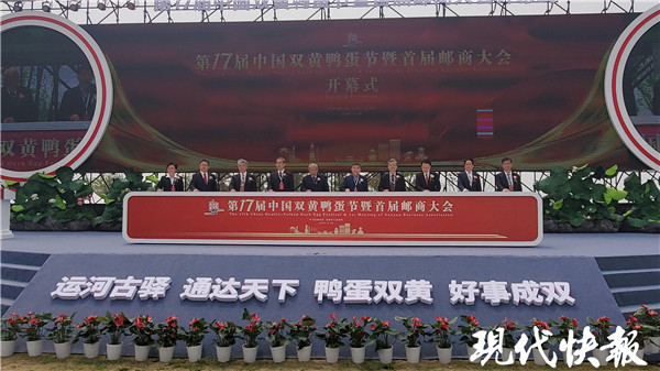 (通訊員 郵宣 記者 韓秋 顧瀟 文/攝)4月16日上午,在風(fēng)光旖旎的高郵湖畔,第十七屆中國雙黃鴨蛋節(jié)暨首屆郵商大會在高郵開幕,200余名高郵籍院士、專家、學(xué)者、企業(yè)家代表以及客商代表出席開幕式。在大會上,正式簽約項目達55個,總投資折合人民幣403億元。