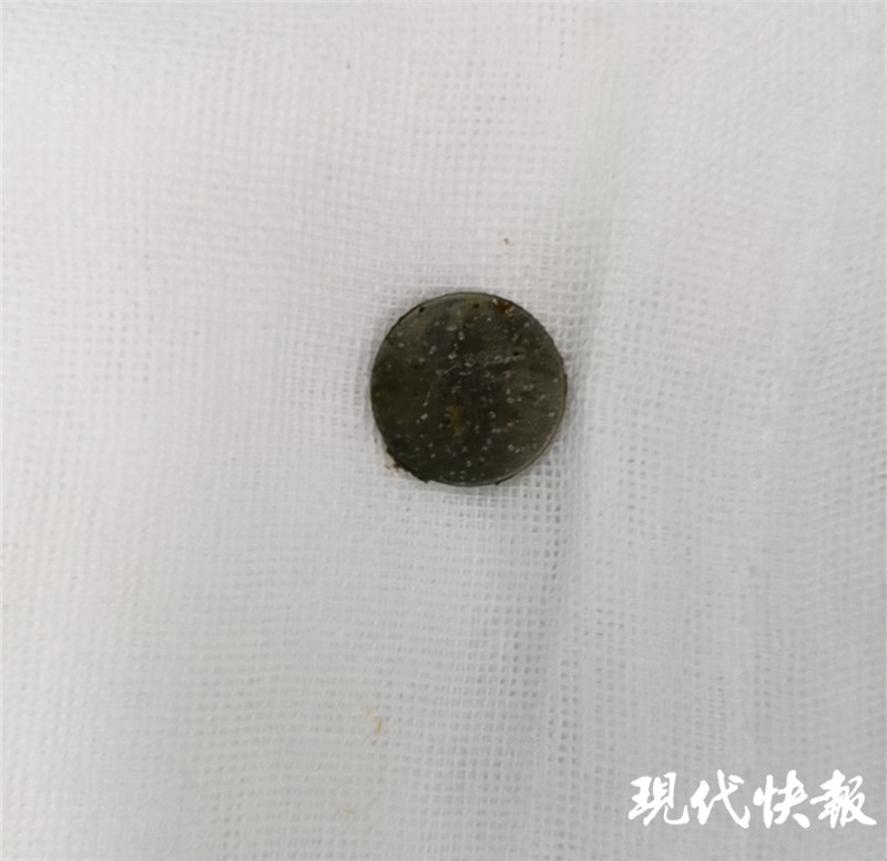 完善手術(shù)準(zhǔn)備,醫(yī)生通過腹腔鏡將電池取出。“這個手術(shù)本身比較困難,因?yàn)檫@個電池非常薄,直徑只有1厘米左右,小腸非常長,我們用了很長時間才找到這個電池,電池附近的腸道黏膜已經(jīng)發(fā)黑,形成了化學(xué)性的腐蝕,如果時間再長一點(diǎn)可能造成穿孔等一些非常嚴(yán)重的后果。”顧春暉說。