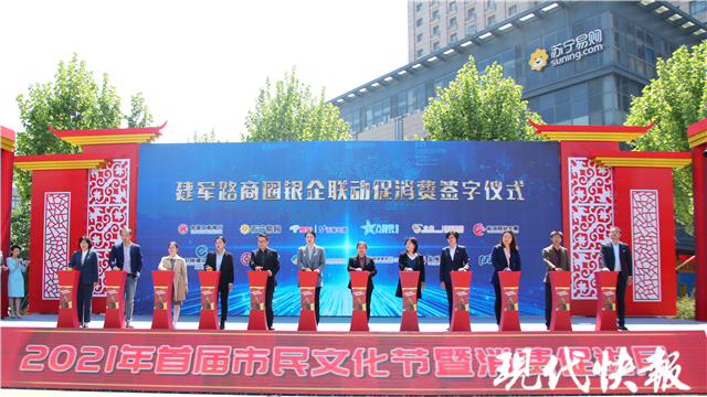 當天,活動在大型歌舞《贊贊新時代》中熱烈開場?,F(xiàn)代快報記者從現(xiàn)場獲悉,全系列活動在5月份持續(xù)開展,現(xiàn)場活動集中在五一假期。1-3號,每天下午都有精彩的展演活動,晚場還有魅力T臺秀,品牌發(fā)布會等。此外,建軍路商圈借五一黃金周之勢,推出讓利惠民活動,各大商超均進行讓利打折,并聯(lián)合多家銀行推出消費滿減活動。