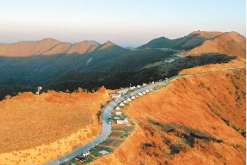 朝霞中的陜西省平利縣正陽草甸巴山一號露營地。新華社記者 陶 明攝