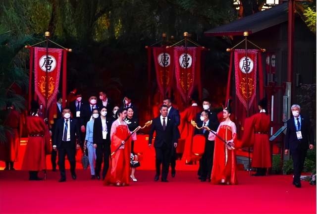 以“大唐盛禮”為主題的歡迎儀式場(chǎng)面壯觀、盡顯大國(guó)風(fēng)范