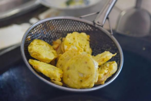 炸藕餅:“藕斷絲連思萬里,鐘靈毓秀遇長江。”從特產(chǎn)蓮藕出發(fā),烹制象征著團(tuán)圓過年的酥脆油潤的藕餅。