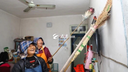 “打陽春”即打揚(yáng)塵。威遠(yuǎn)農(nóng)村以前的房子,燒柴做飯,煙熏火燎,平時農(nóng)民沒時間大掃除,等到臘月二十三來一次徹底清掃。那時候,每年臘月二十三吃過早飯,各家的主婦就開始把家里的桌椅板凳、壇壇罐罐等物品搬到院里。不能搬的床、柜子等物件就用塑料布遮起來。然后到竹林里砍一根竹竿,拿回家扎成一把長掃帚。用竹子扎掃帚掃塵,這里面還有驅(qū)“竹”掃“陳”的諧音,表示將迎來新年好運(yùn)。如今在農(nóng)村,人們住上了樓房,家里進(jìn)行了裝修,廚房里用上了電或天然氣,也安裝有抽油煙機(jī),屋里基本不再積累煙塵。打揚(yáng)塵,卻依舊是人們的過年習(xí)俗,它寄托著人們辭舊迎新的美好愿望。
