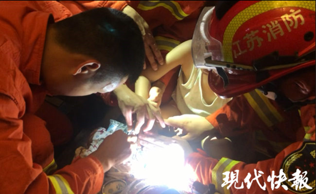 據(jù)了解,當時家長出門了,只有男童和哥哥在家。男童在玩雙節(jié)棍玩具時手指不慎被卡,哥哥趕忙打媽媽的電話。孩子母親回來之后用食用油抹在小拇指處,試圖將手指取出,但沒有成功,最后求助消防。