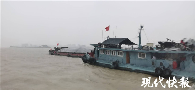 “當(dāng)時,我們的艇就在現(xiàn)場,雨下得很大,船也非常多,一條接一條,這種情況下,如果不能得到及時救助,后果不堪設(shè)想。”現(xiàn)場監(jiān)督員胥文席提起當(dāng)時的情形還心有余悸。值得慶幸的是,不久前他剛剛提醒頂拖船隊請拖輪協(xié)助,船隊聯(lián)系的助拖船剛好到達(dá),胥文席當(dāng)場攔下?lián)岆U。為盡快了解情況,趙學(xué)強(qiáng)、胥文席兩人冒著大雨登上了失控的貨船。