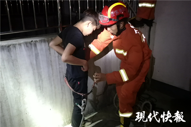 根據(jù)現(xiàn)場情況,消防指揮員立即下令,消防員將軟梯降至蓄水池底部,軟梯頂部用救援腰帶系牢,并將安全腰帶連接安全繩遞送給被困男孩,待男孩系緊腰帶并再三測試安全后,消防員利用事先綁在腰帶上的安全繩,牽引男孩輔助其順著軟梯向上攀爬。經(jīng)過約15分鐘的緊張施救,被困男孩成功獲救,身體并無大礙,隨后男孩被民警帶走送回家中。