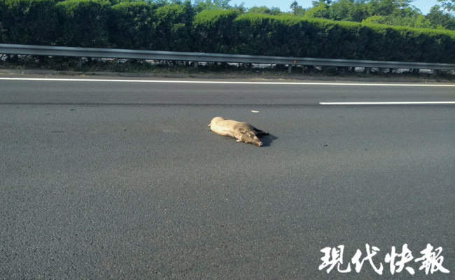 8月1日上午7點(diǎn)28分,南京交警高速十一大隊(duì)指揮室接到報(bào)警,在滬武高速由東向西252km處,一輛小車撞到了一只野豬,車輛受損,等待救援。接到報(bào)警后,民警立即趕往現(xiàn)場(chǎng)處置。