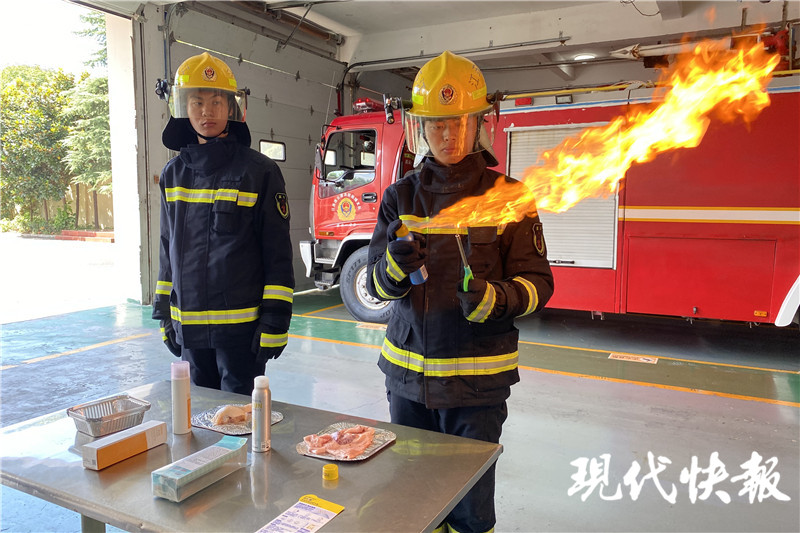 “市面上用的防曬噴霧,成分里面都含有變性乙醇,還有一些丁烷、異丁烷,這些可燃的烷烴類(lèi)的物質(zhì)。這些都是可燃物,遇到火就會(huì)燃燒。雞腿代表的就是人的皮膚,當(dāng)人的皮膚上大量涂抹這種防曬噴霧的時(shí)候,遇到明火它就會(huì)著火,然后對(duì)人的皮膚進(jìn)行一定的灼燒。”灌云縣長(zhǎng)安路消防救援站副站長(zhǎng)雷李俊說(shuō)道。